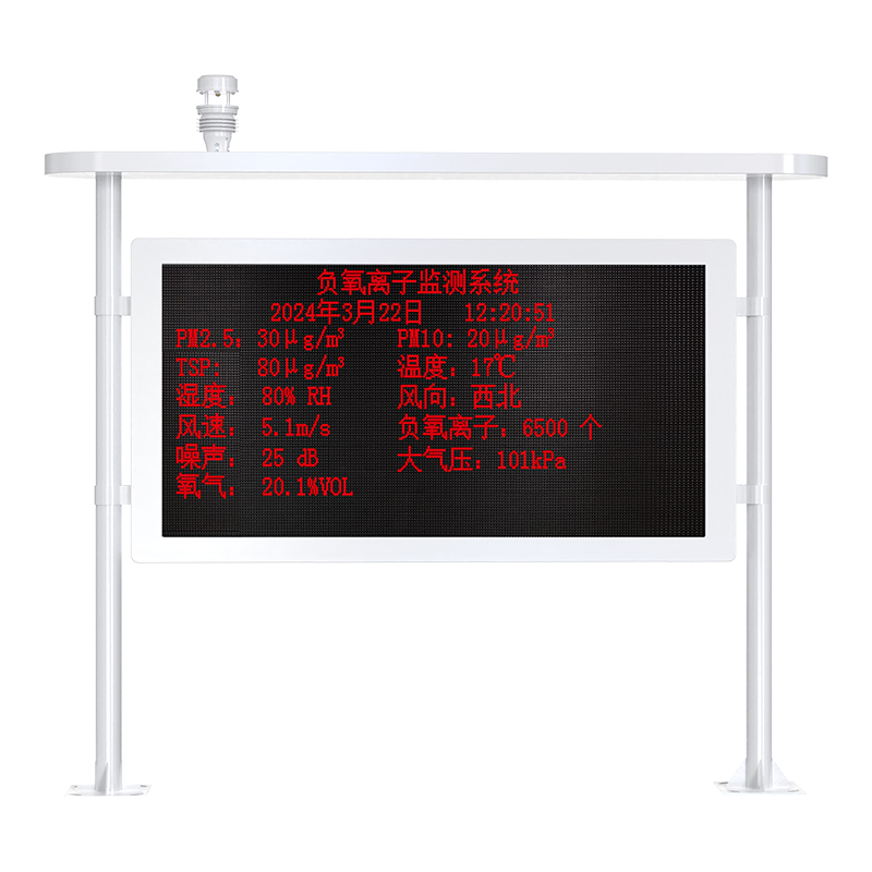 景區(qū)/公園/森林等室外負氧離子監(jiān)測站通常由“負氧離子檢測儀、數(shù)據(jù)采集主機、安裝防護支架、太陽能供電系統(tǒng)、LED顯示大屏”等部件組成,基于RS485、以太網(wǎng)、4G等物聯(lián)網(wǎng)通信技術(shù),依托環(huán)境監(jiān)測云平臺,形成了集“遠程監(jiān)測、LED大屏展示、LED大屏信息發(fā)布”等多功能一體的智能環(huán)境監(jiān)控管理體系。
