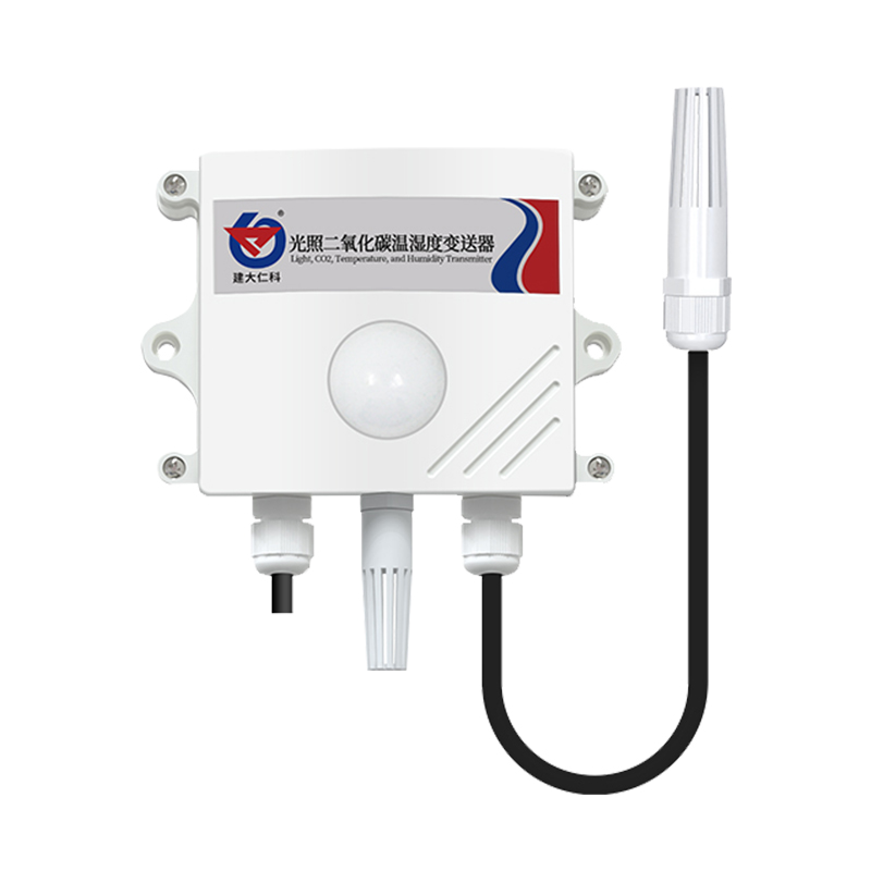 光照二氧化碳溫濕度變送器采用NDIR傳感器進行二氧化碳濃度測量,反應迅速靈敏,避免了傳統電化學傳感器的壽命及長時間漂移問題;采用高精度感光變送器測量光照度,輸出數值計量單位為Lux;采用瑞士原裝溫濕度測量單元測量溫濕度,測量精度高、抗干擾能力強。