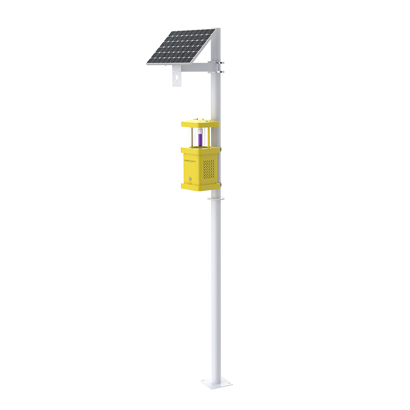 風吸式殺蟲燈是一款物理滅蟲器械,利用光波引誘害蟲成蟲撲燈,然后風機轉動產生負壓氣流將蟲子吸入到收集器中,使之風干、脫水,達到殺蟲的目的。我司開發的風吸式殺蟲燈,改進了光源和殺蟲方法,突破了用常規殺蟲燈殺滅小害蟲的能力,大大提高了害蟲的殺滅效率。