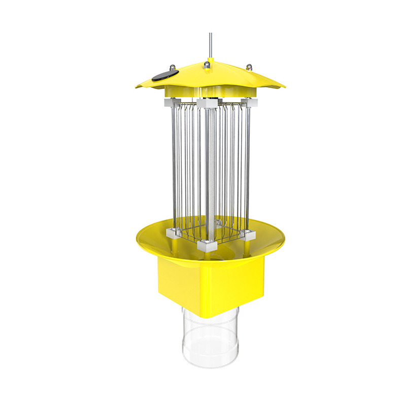 頻振式殺蟲燈是一款滅蟲器械,利用光波引誘害蟲成蟲撲燈,外配以頻振高壓電網觸殺。 在殺蟲燈下裝有接蟲盒,使之風干、脫水,達到殺蟲的目的。該設備以太陽能電池板為電源,白天儲存電源,晚上為殺蟲燈提供電源,引誘害蟲撲向燈源。
